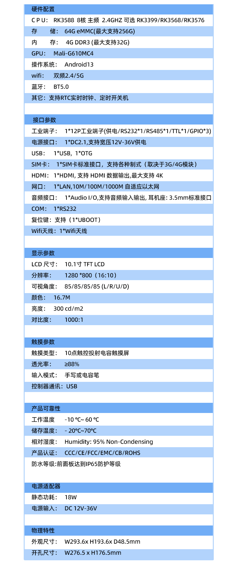 | 存儲 | 64G eMMC(最大支持256G) |